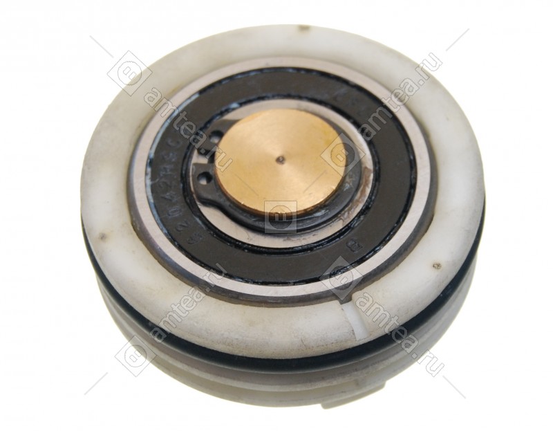 Против шкива. В комплект входит подшипник, сальник для стиральных машин ARDO.